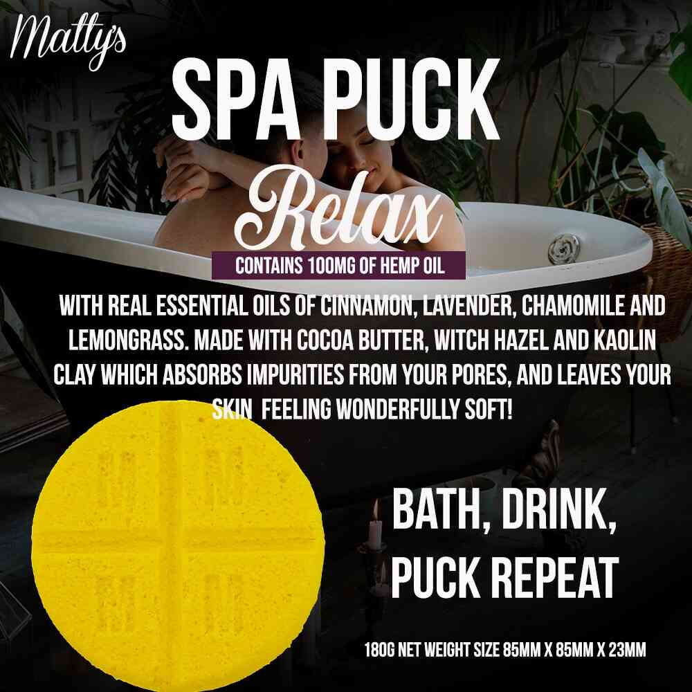 Bath Puck Drink Repeat Contains 100mg Hemp Oil.